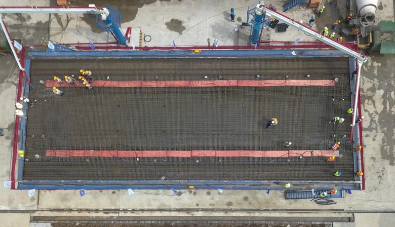 廊坊凱博建設機械科技有限公司(凱博科技)依托北京建筑機械化研究院有限公司在鋼筋加工機械領域多年的技術積累,針對高鐵箱梁預制施工各環節對鋼筋制品的差異化需求,潛心研究、精心攻關,按照中鐵十一局集團橋梁有限公司項目需求,助力新建首個滬渝蓉項目武宜段WYZQ-5標荊門鐘祥制梁場。其中鋼筋加工數字化項目,包含GQX-300數控鋼筋剪切生產線、GWXL2-32D數控彎曲中心、GWXL4-25D數控彎曲中心、GQX-GWX-25數控鋼筋剪切彎曲一體生產線、GGJ12數控鋼筋彎箍機、GT5-12調直機(32米)、GTWQ12調直五機頭、HJDW12焊接定位網等多種設備,可定制化生產高鐵箱梁預制施工各環節多種鋼筋制品。
