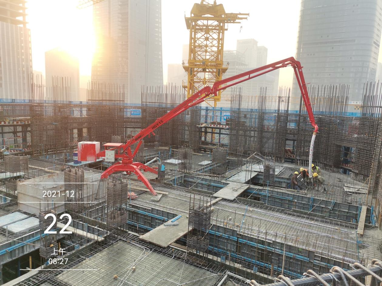 中信泰富·濟南尊超高層項目位于濟南CBD核心區,新濼大街以北,茂嶺三號路以西,綢帶公園以東,占地面積2.13萬平方米,總建筑面積28.23萬平方米。項目共建設2棟商務樓及大型商業裙房,其中T1塔樓地上64層,總高度326米;T2塔樓地上23層,總高度123米。項目建成后,將成為濟南又一座突破300米的超高層建筑。該項目使用的布料機為凱博科技生產的HGY32樓板爬升式布料機。
