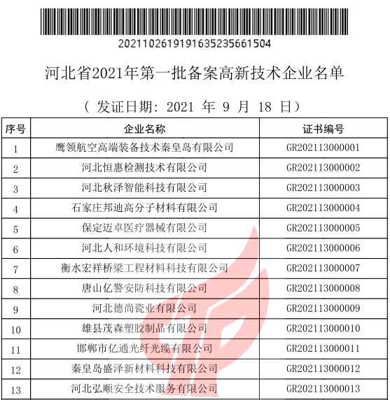 凱博科技順利通過河北省高新技術企業認定