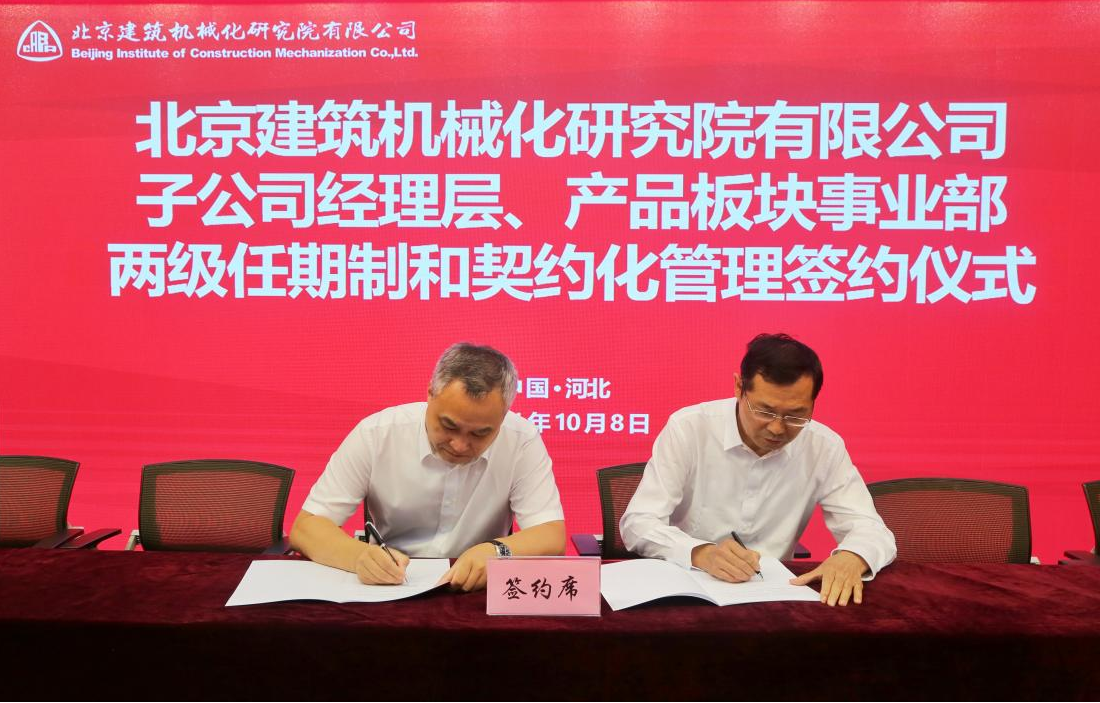 10月8日,北京建機院舉行所屬子公司廊坊凱博建設機械科技有限公司以及公司所屬事業部兩級經理層成員任期制與契約化管理簽約儀式。北京建機院領導、公司部門以上負責人等共計80余人參加簽約儀式。