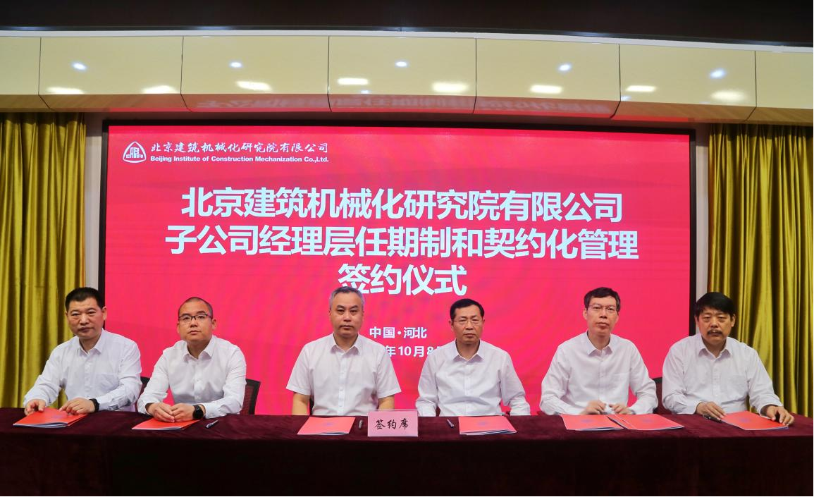 北京建機院黨委書記、董事長、總經理宮劍飛與公司常務副總經理王振豐簽訂了《崗位聘任協議》,王振豐常務副總經理分別與趙紅學、田國承、肖飛、盧宏偉四位副總經理簽訂了《崗位聘任協議》;宮劍飛與公司管理團隊簽署《年度經營業績責任書》和《任期經營業績責任書》,啟動三級子公司經理人團隊的任期制與契約化試點。