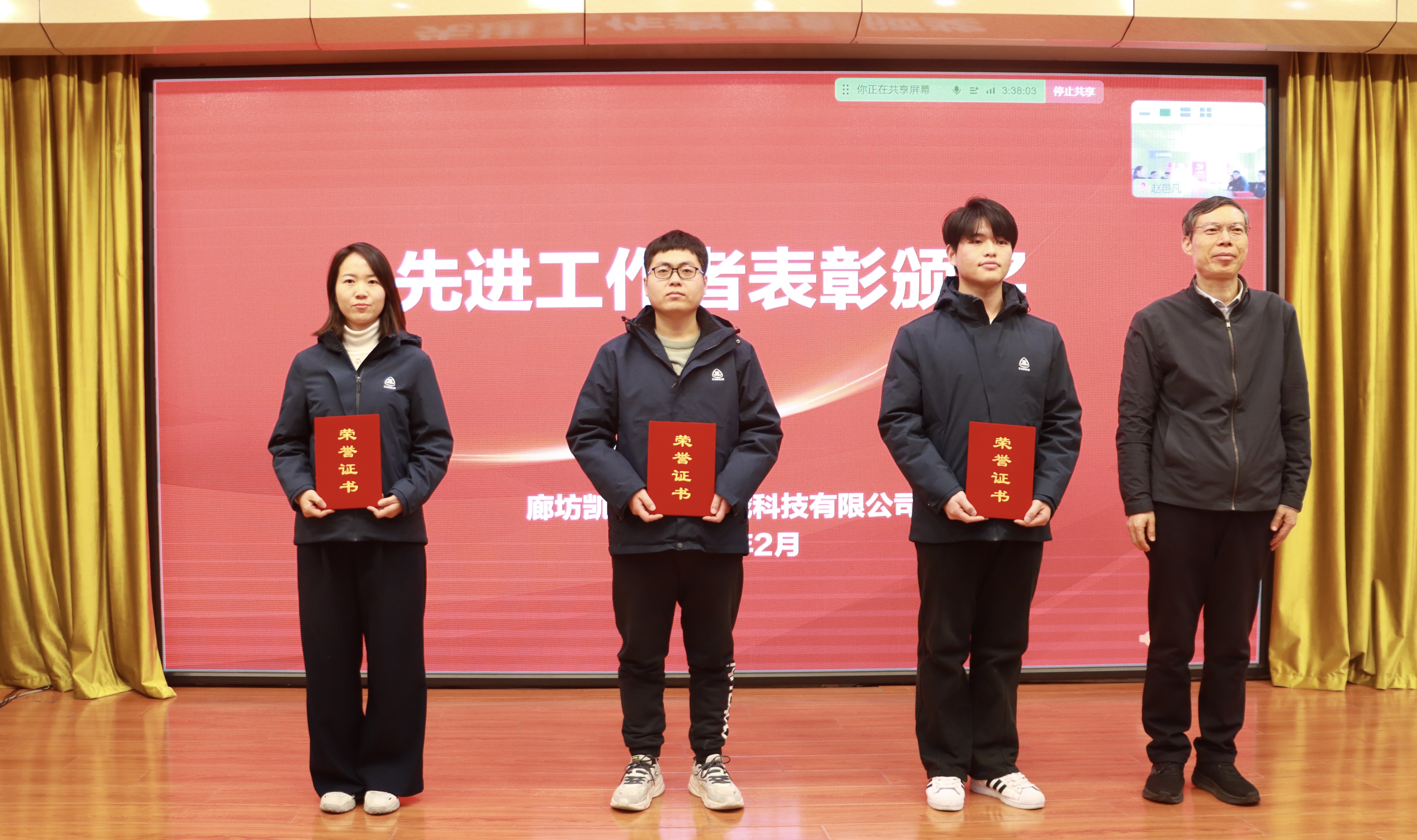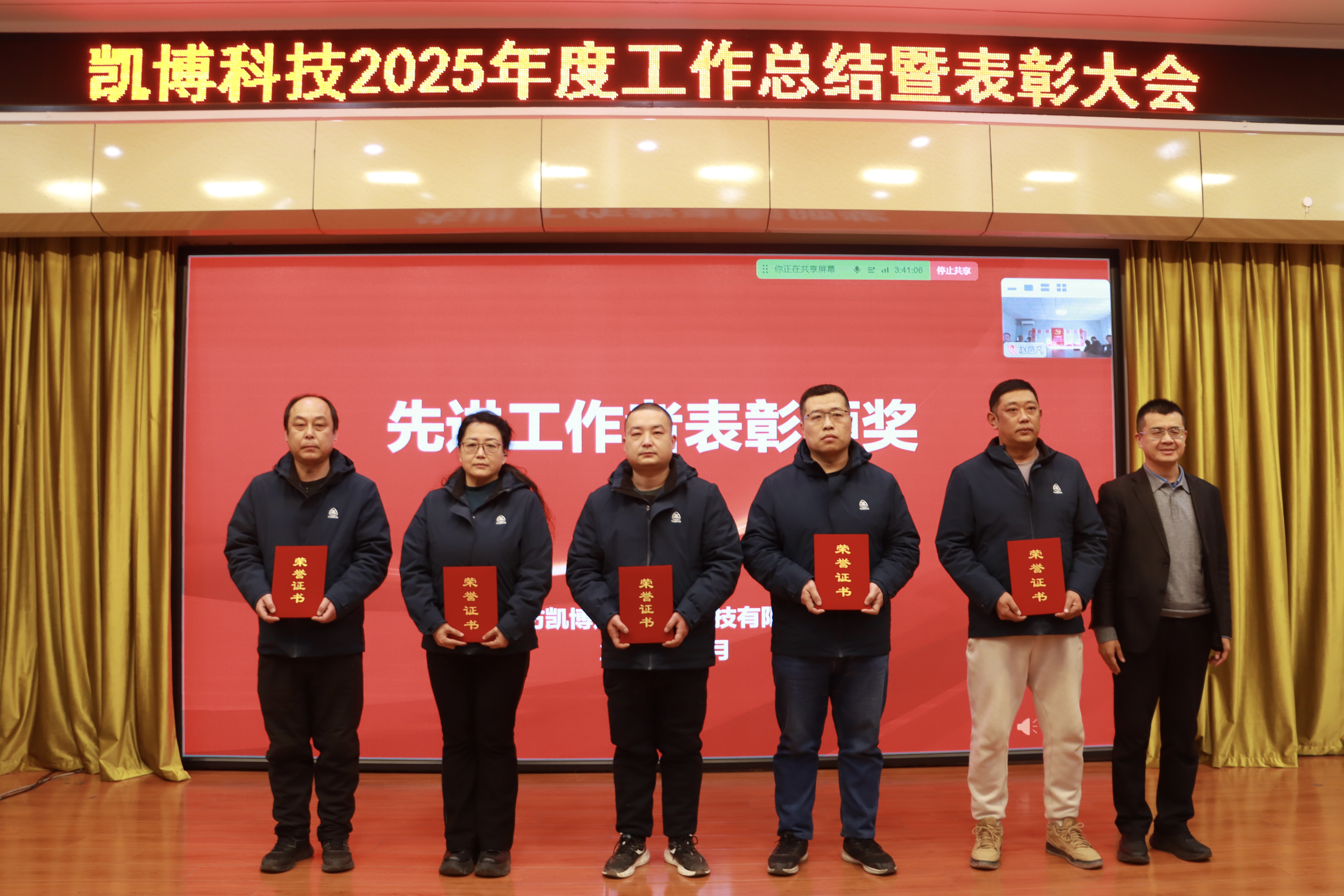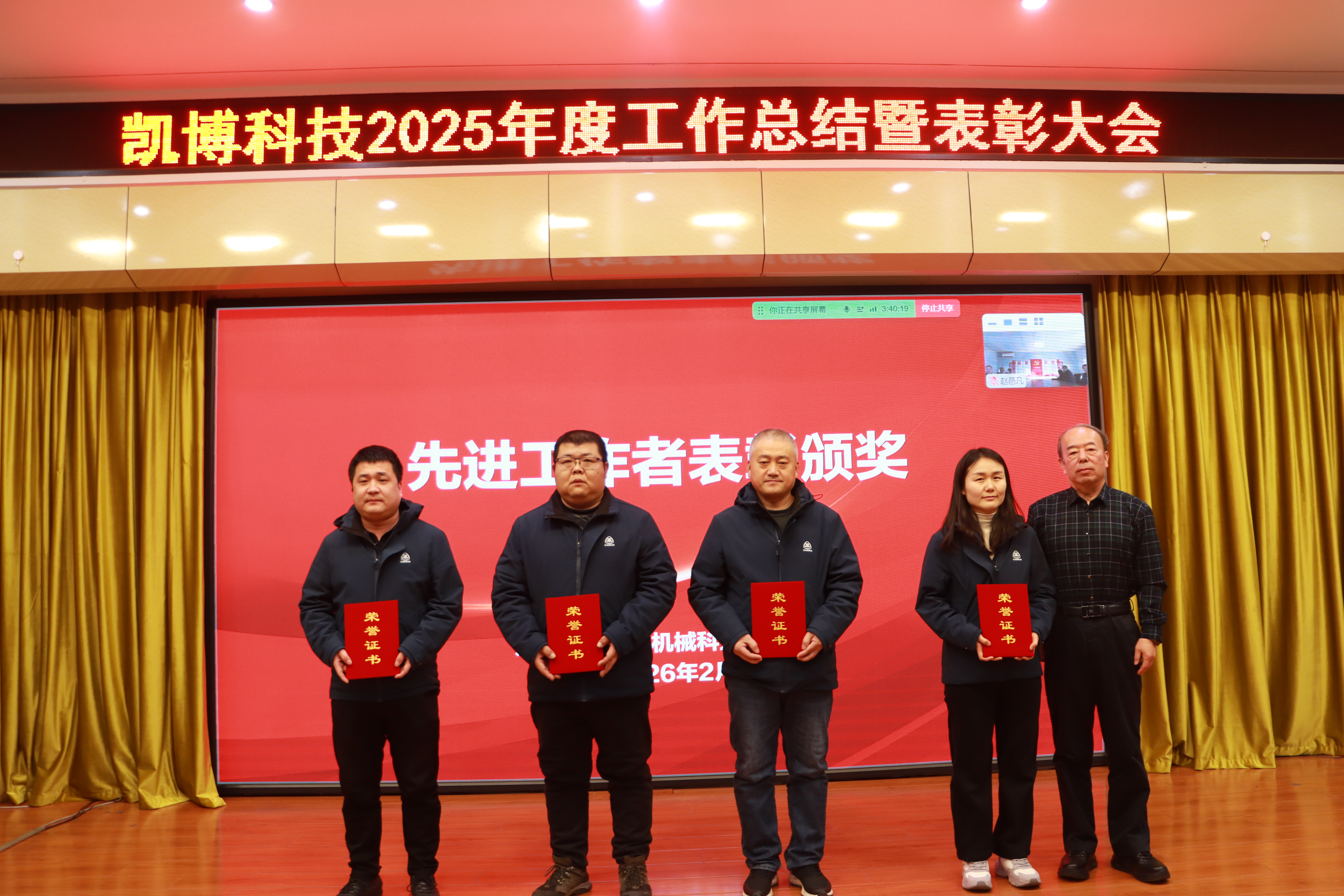 凱博科技副總經理盧宏偉宣讀了2025年度評優表彰決定,與會領導為先進獲得者頒獎。